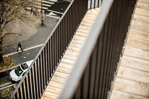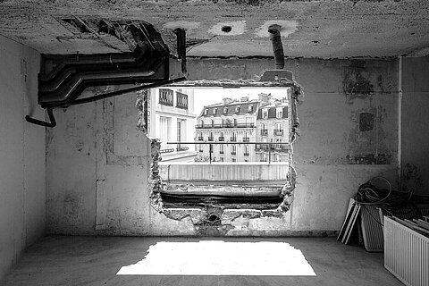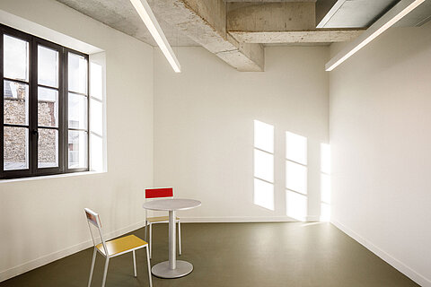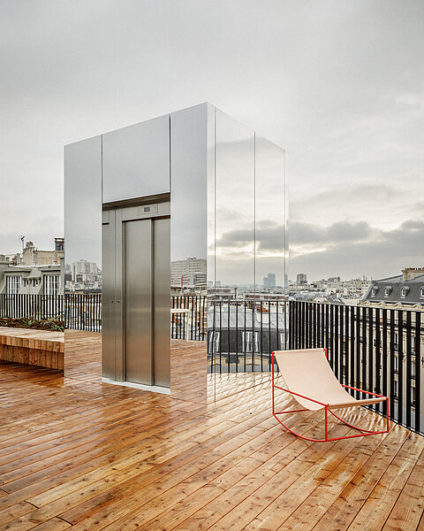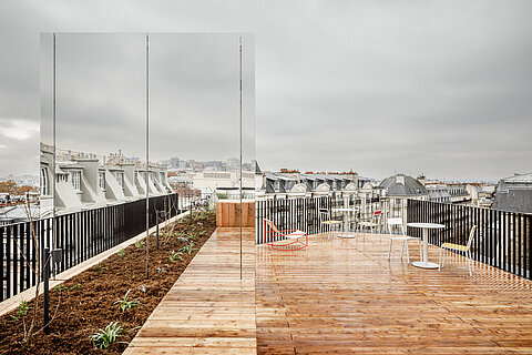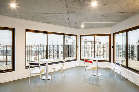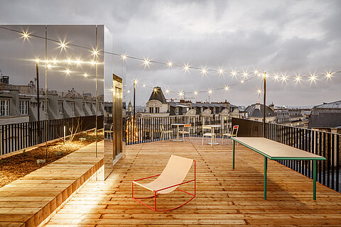 Transformer l’existant est un défi à la fois spatial, programmatique et technique. En tant qu’architectes, nous sommes sollicités pour le surmonter afin de réenchanter les qualités du bâtiment initial. L’aménagement intérieur est pensé de manière habile pour offrir un plan libre, une déambulation fluide entre les étages et une terrasse panoramique dominant les plus beaux monuments de la capitale.