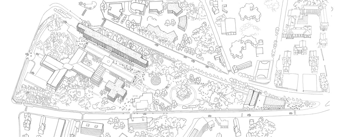 Le site profite d’une localisation privilégiée, proche de la forêt domaniale de Saint-Germain-en-Laye, d’infrastructures ferroviaires et routières, du centre-ville et de la nouvelle ligne de tramway T13. Il permet le dialogue entre le tissu pavillonnaire, une végétation riche et un patrimoine paysager et architectural remarquable. Il nous a paru primordial de respecter l’identité du parc tout en favorisant des interactions entre les différents « bâtiments-objets » présents sur le site, dont le château Saint-Léger (1886) réhabilité par Dominique Perrault en 1991 et le bâtiment coconçu par Jean Prouvé et René Coulon en 1952. En effet, l’idée du parc devient encore plus manifeste avec les aménagements paysagers. La composition végétale réintroduit l’image romantique tandis que des lieux d’échanges se façonnent sous différentes formes d’espaces extérieurs.