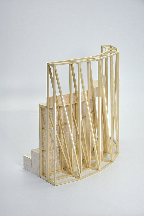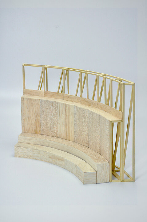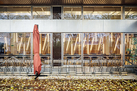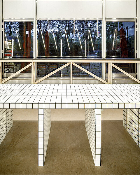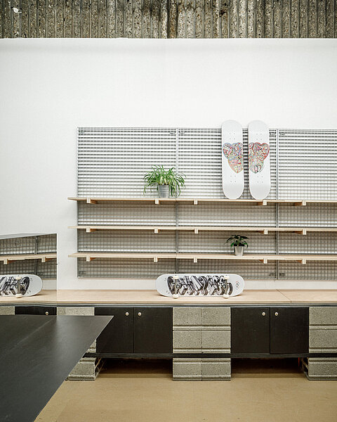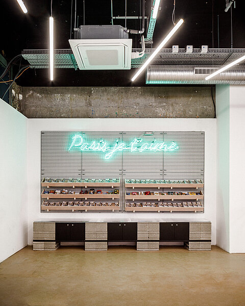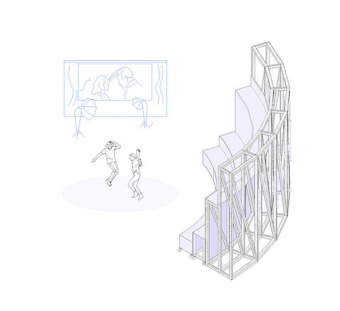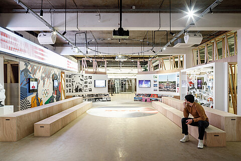 A rez-de-chaussée, l’aménagement est autant destiné à l’accueil et l’information du public qu’à la promotion des nouveaux sports olympiques : breaking, skateboard, basketball 3x3, surf et escalade sportive. Inspiré des cirques antiques formés par une structure en hémicycle, le cœur du projet se veut fédérateur. Il est ancré dans une dynamique urbaine et sociale qui reflète une image inclusive de la ville, des usagers et des usages, dont font partie ces sports contemporains