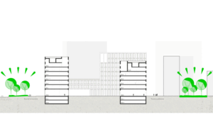 Nous avons choisi de mettre en exergue cette innovation qui est un des critères du label WELL, niveau Gold, pour faire de ce projet un exemple en matière de développement durable. Par le biais de la biophilie, thème hyper contextualisé dans le cadre d’un projet qui s’inscrit dans un pôle santé, nous visons à améliorer la productivité des utilisateurs, l’image du preneur et surtout le bien-être au travail.
